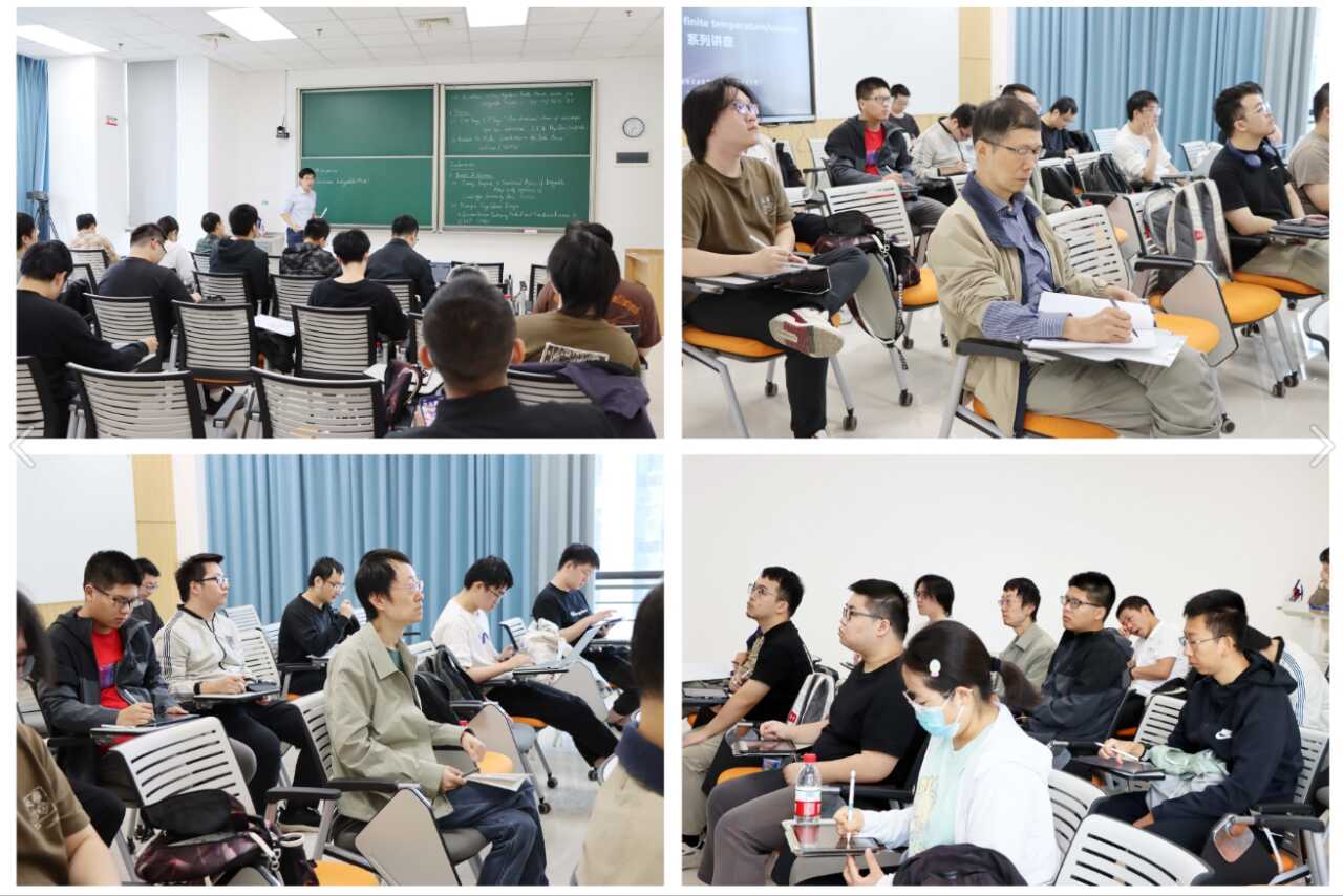 本次系列讲座主要内容包括(1) Physics near ground state,(2) Thermodynamic Bethe ansatz,(3) Quantum transfer matrix,(4)Integrable quantum field theory in finite volume 等相关研究课题。江老师授课逻辑清晰,重点突出,充分的讲解促进了与会人员对相关内容的深入理解,取得了较好的效果。
